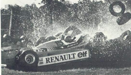 Jabouille foi retirado do carro com as duas pernas quebradas.
