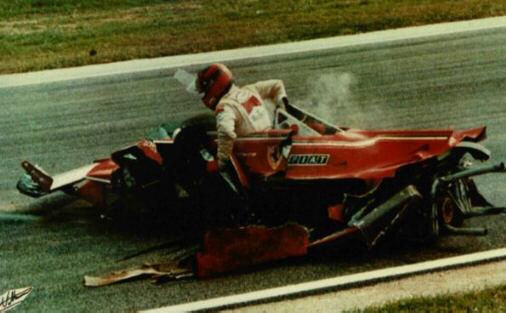 Villeneuve estava a 250 km/h e, ao entrar na Acqua Minerale, um pneu traseiro estourou.
