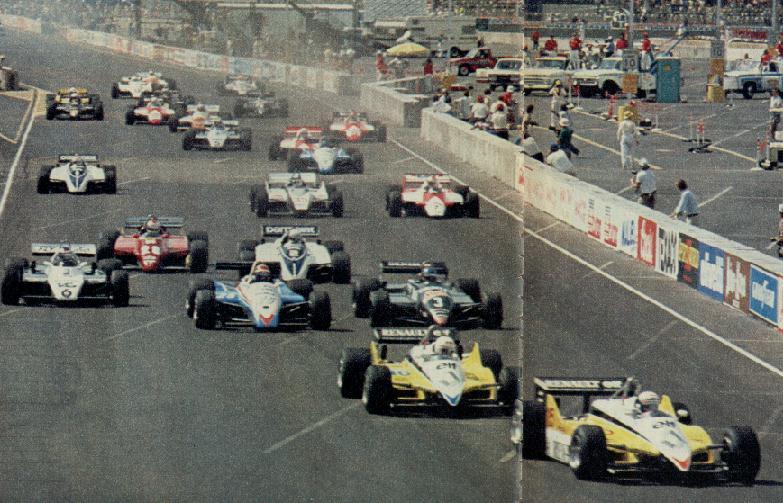 Alain Prost pulou na frente, seguido por René Arnoux.