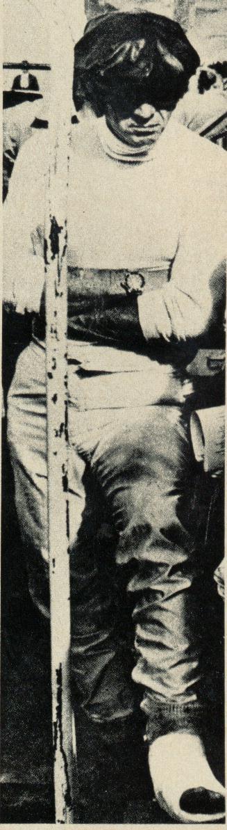 Steve McQueen, mesmo com o pé engessado, mantinha um ritmo forte de corrida.